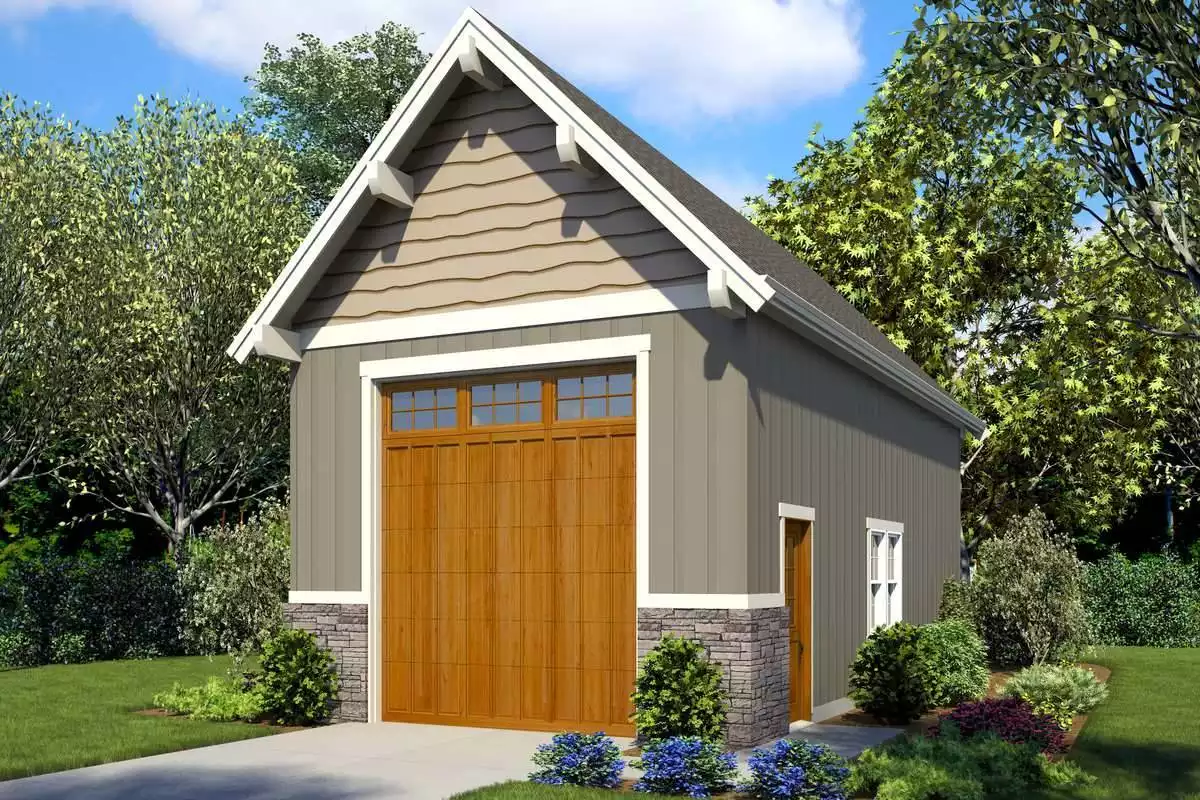 Tombstone 1 Car RV Garage Craftsman Style House, Plan 7225