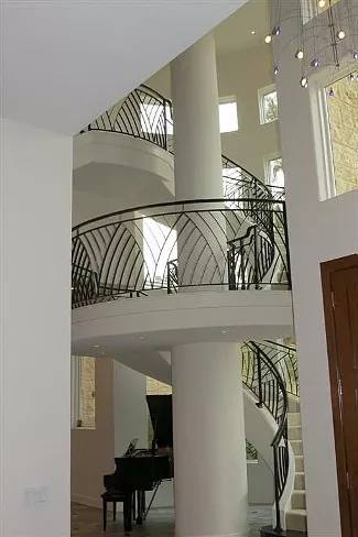 This Mediterranean luxury mansion is stunning. The elegant foyer's spiral staircase makes for the rotunda-tower look to the exterior of this luxury mansion house plan. A quiet study with built-in desk and access to the master suite sits in the front corner of this home. The luxurious master suite boasts a private patio, trey ceiling, lavish master bath with his and hers vanities, separate shower, whirlpool, and a large wardrobe. The family room, dining room and kitchen are separated from one another only by the breakfast bar in the kitchen. A free-standing island provides extra counter space. The pantry and kitchen provide ease in serving those family dinners. Access to the patio with fireplace and (concept) pool can be achieved from the family room. Two garages, a two-car and a one-car garage sit on either side of the motor court. An exercise area facing the lush landscape out back completes the main level of this house plan. Upstairs, three family bedrooms with walk-in closets and full baths share space with a game room with built-ins, balcony access and a media room. A second balcony and viewing room complete this Mediterranean luxury mansion house plan.
