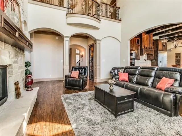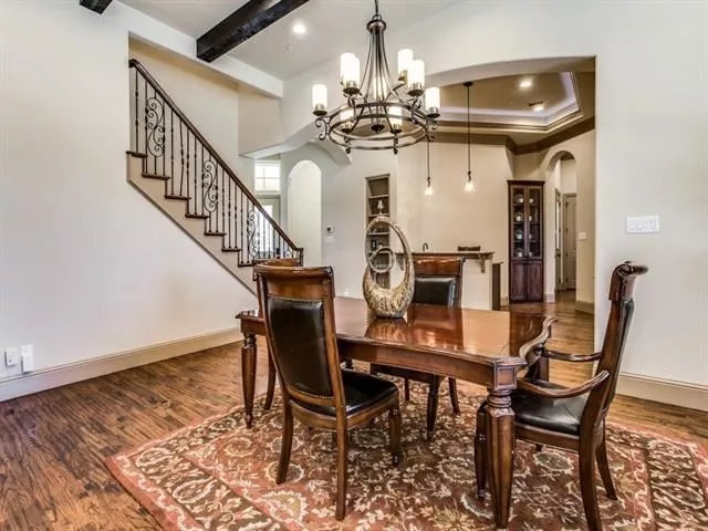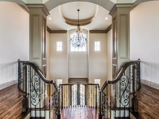 circular landing above. The foyer is flanked by the elegant dining room and formal living room, each with arched