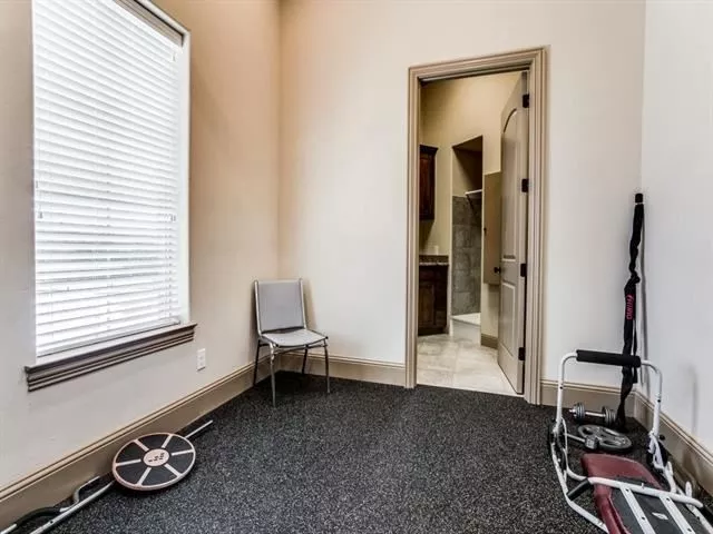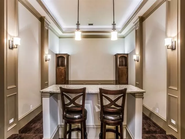 separated by a big utility room, exercise room and bar. The bar offers access to a media room with a 12-foot