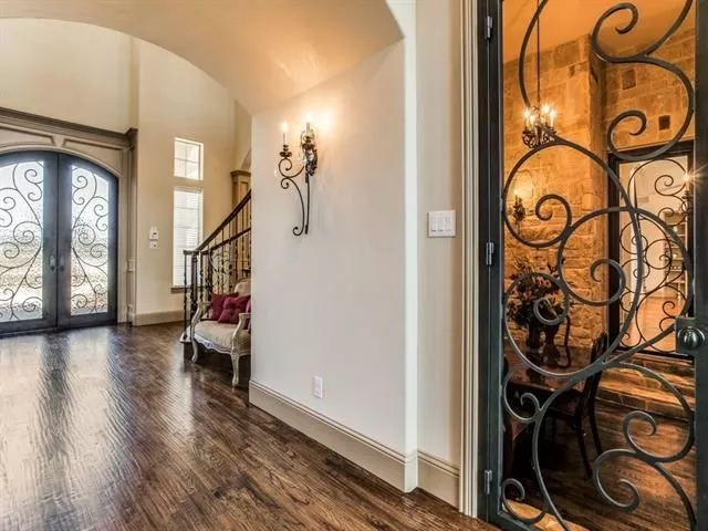 flocked with warming coach lights and enlightening sidelites. The stunning grand foyer opens into a sweeping