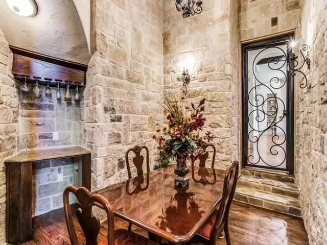 built-ins. Adjacent to the foyer is a wine room that leads to the pantry and gourmet kitchen. Twelve-foot