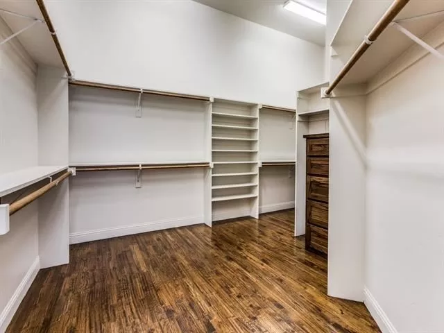 and marble. There is also a separate glass shower and two large wardrobes with built-ins. The right wing of