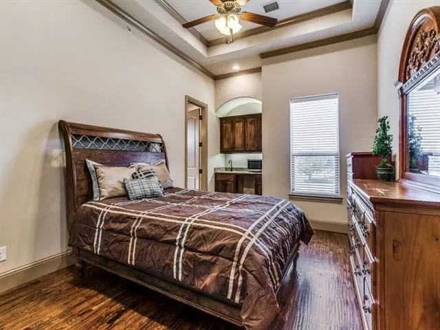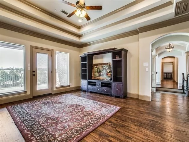 sixth bedroom, which also has a walk-in closet. A large game room with outdoor access to the upper covered