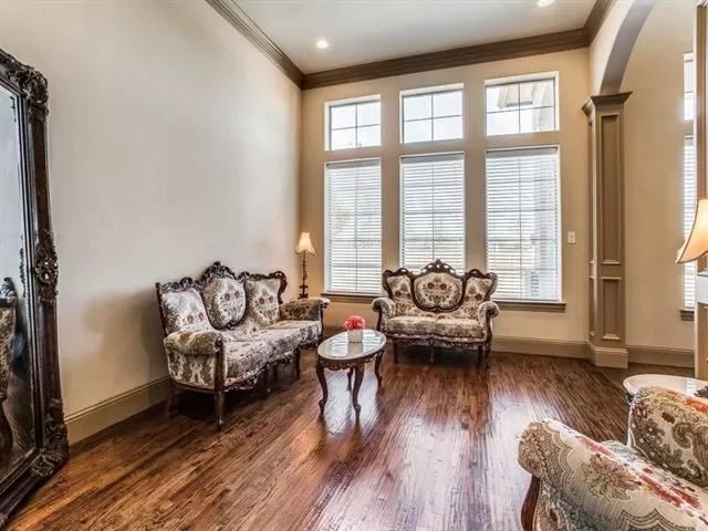 allows easy access to the backyard, making this the perfect perch for guests. The left wing of the elegant floor