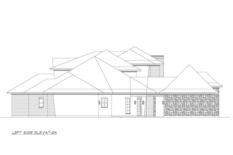 This sprawling Southwestern mansion home plan combines elegance and luxury inside and out. The exterior stone