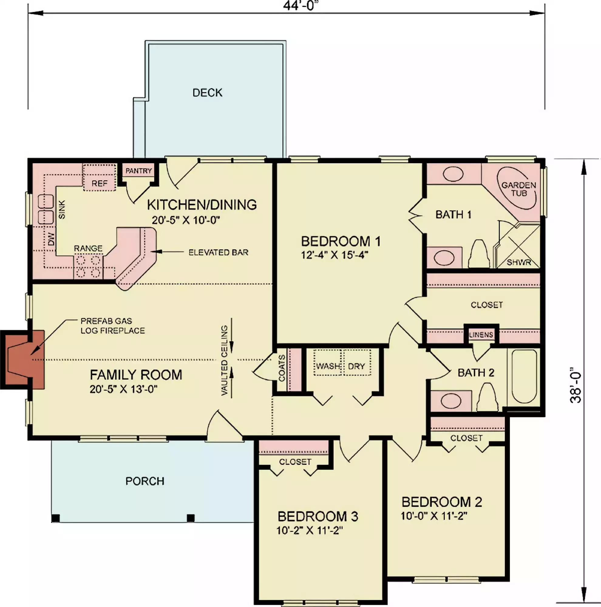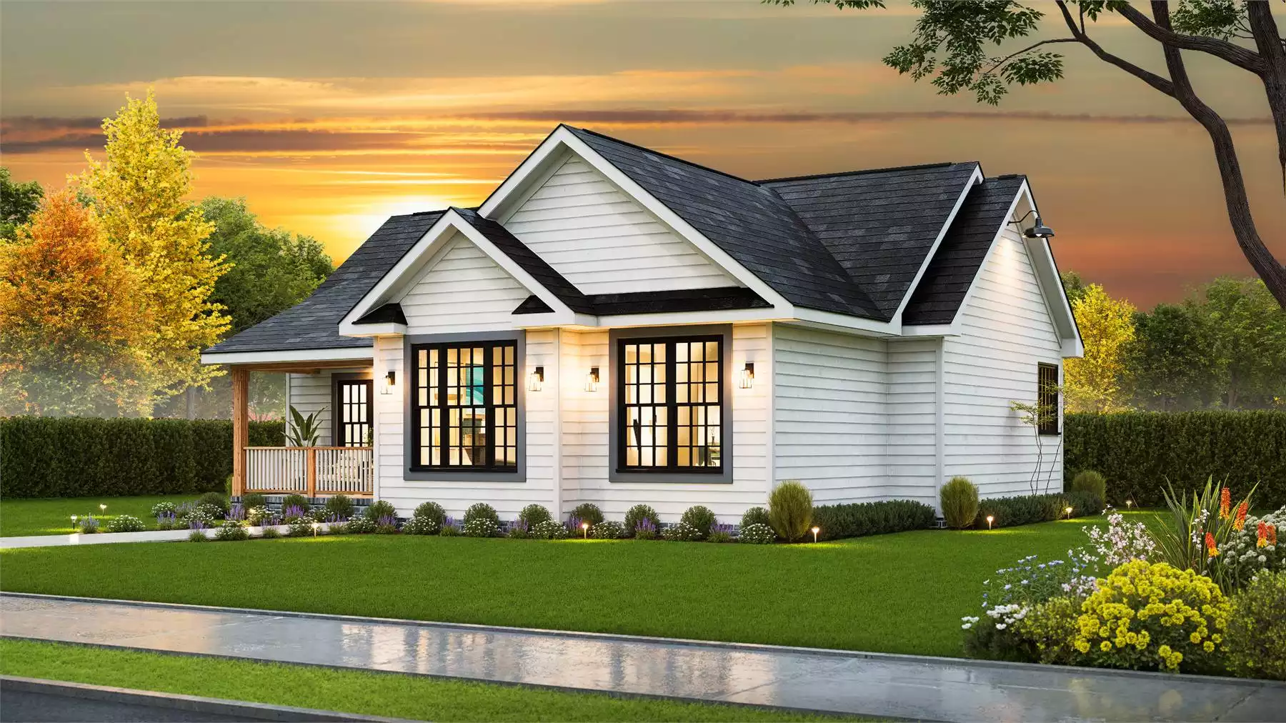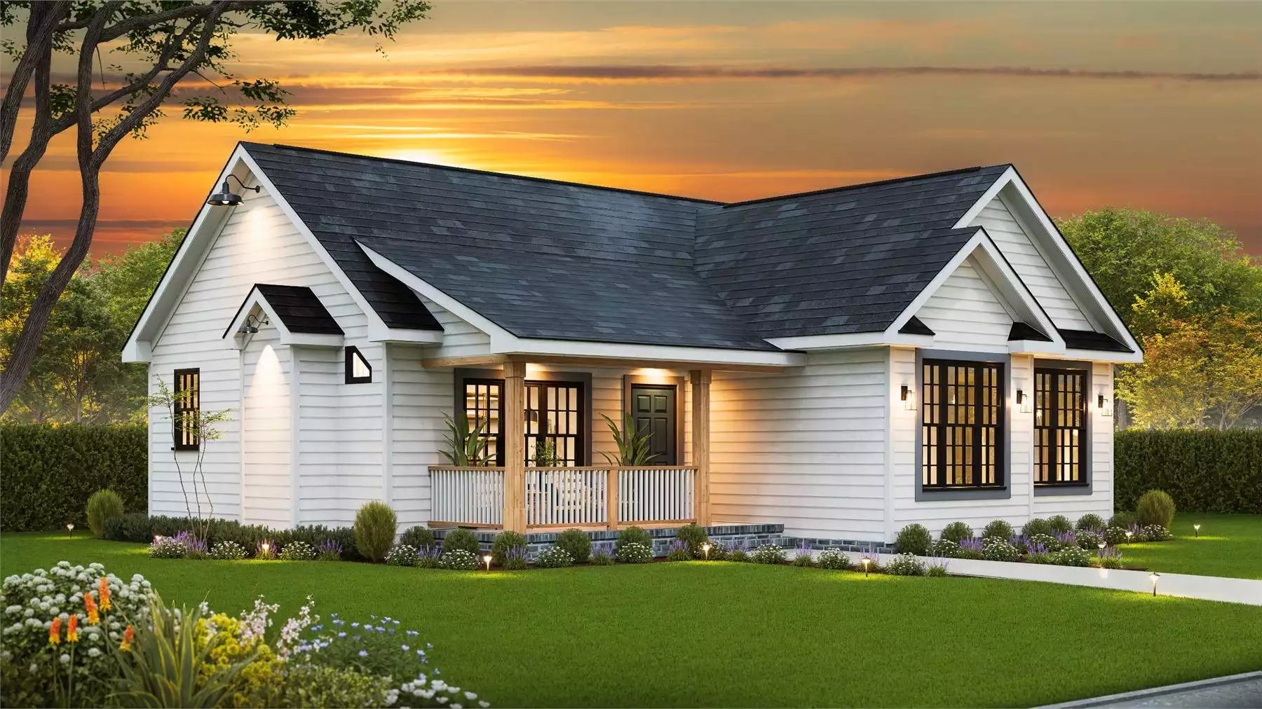 Gordonbrook is a cozy and efficient 3-bedroom, 2-bathroom ranch home offering 1,334 square feet of well-balanced space. The vaulted family room flows into the kitchen and dining area, creating an open, airy layout perfect for daily living. A kitchen island with seating and a corner pantry add function without sacrificing space. The primary suite features a private bath and closet, while two additional bedrooms share a full hall bath. Enjoy outdoor living with both a covered front porch and rear deck. With its simple charm and practical layout, Gordonbrook is ideal for families, first-time buyers, or downsizers.