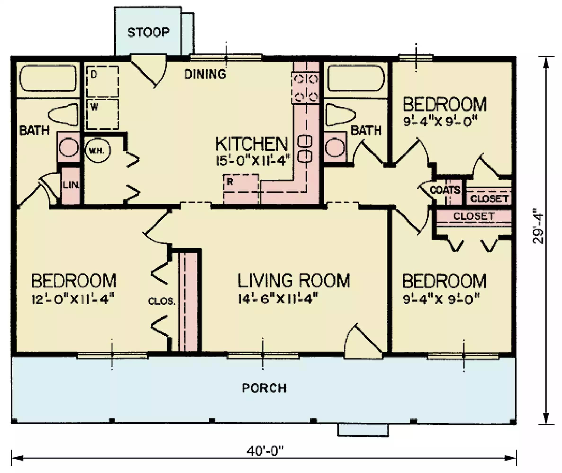 Homestead Grove offers a timeless ranch layout with classic country curb appeal in just 960 sq. ft. This single-story home features 3 bedrooms and 2 full bathrooms in a traditional, closed-concept design that offers separation between rooms for privacy and function. The cozy living room is distinct from the dining and kitchen areas, providing peaceful retreat and ease of use. A covered front porch creates a warm, welcoming exterior perfect for relaxing outdoors. Ideal for those seeking simplicity and affordability without an open-concept interior, this plan fits narrow lots while maximizing comfort. Looking for the same plan with just a little more space? Explore the larger 1,056 sq. ft. version here: Plan 10828