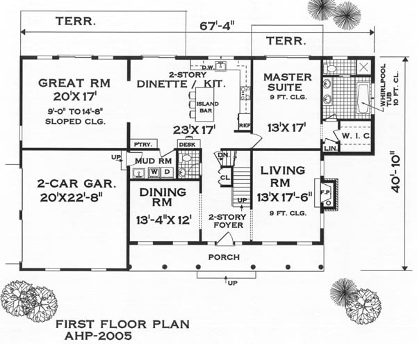 Colonial-style facade features a columned front porch, shuttered windows and five enchanting dormers. The foyer opens into the formal areas, including a fireplace in the living room.A two story kitchen serves ti dinette over a handy island snack bar. The great room boast a volume sloping ceiling. The master suite enjoys a private terrace, grand bathrrom and walk-in-closet.