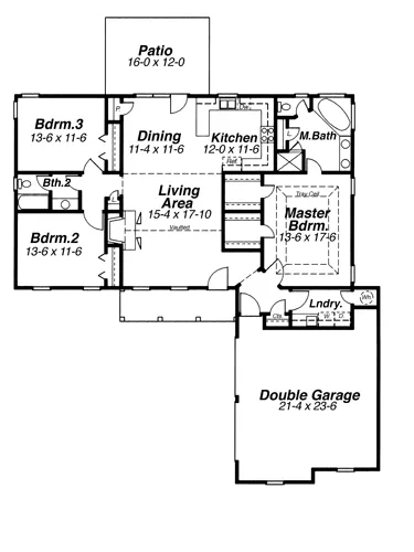 This split bedroom ranch house plan is packed with curb appeal. Inside, it features a master suite with his and hers walk in closets, a bathroom with a corner tub, separate shower and commode closet, in a addition to a spacious laundry room located just next door. The secondary bedrooms are also quite spacious with a shared compartmentalized hall bath. The plan also has an alternate floor plan that makes it 100% ADA compliant. See House Plan 1078.