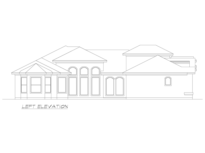 This Mediterranean home plan offers a split bedroom plan and is perfect for a family, all on one floor. The stucco façade is enhanced with the red tile roof and arched glass pane windows with shutters and a two story, covered entryway. Through the double doors, enter the foyer into the study. Beyond are two family bedrooms, each with walk-in closets that share a Jack-n-Jill bathroom. From the foyer, an elegant dining room with trey ceiling and large decorative columns define the perimeter of the room that leads to the family room with its vaulted 15’ ceiling. The family room opens into the breakfast room and kitchen. The gourmet kitchen has a free-standing center island, breakfast bar and modern, state-of-the-art appliances, as well as a large pantry. With access to the utility room and dining room, entertaining, serving and clean-up is convenient. Adjacent to the kitchen is a third family bedroom with trey ceiling, walk-in closet and bathroom, and due to its location with the one-car, front-entry garage, could be a great guest room, teen’s room or in-law suite. Access to the outdoors can be achieved through the family room, foyer, or breakfast room. There are many interesting ceiling styles and amenities in this Mediterranean luxury home plan.