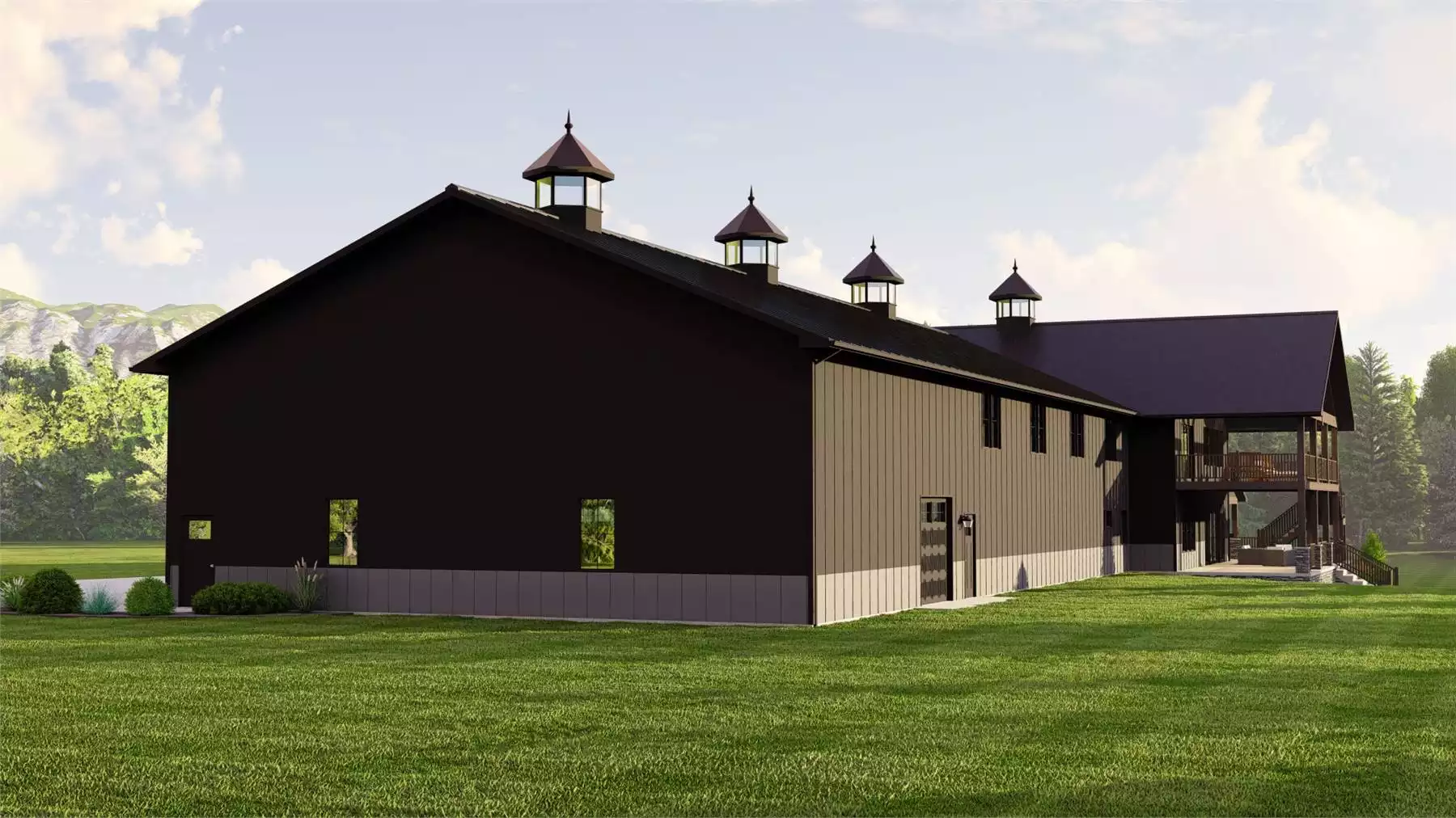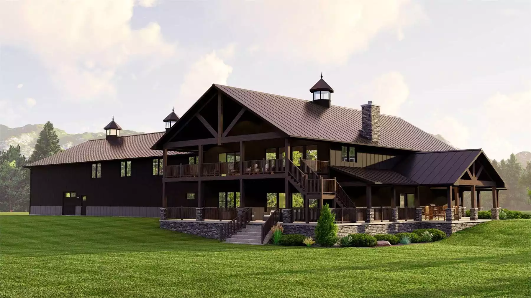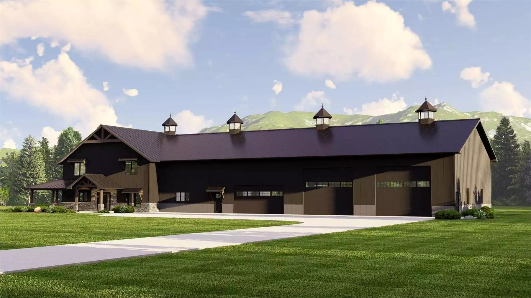 Harley Acres is a stunning 4,601-square-foot modern farmhouse designed for comfort, versatility, and style. A massive covered porch wraps around three sides of the home, creating a seamless connection between indoor and outdoor living. Inside, the open-concept layout features a dramatic two-story great room with fireplace, a soaring dining area, and an L-shaped kitchen with a large island—perfect for gathering and entertaining. A front den offers flexibility as a guest room or office, while the rear primary suite is a true retreat with a spa-like ensuite, walk-in closet, and views to the surrounding landscape. A built-in safe room adds peace of mind. Upstairs, you'll find two additional bedrooms, a full bath, and a large loft-style flex area ideal for media, games, or work. The oversized 4-car garage includes RV parking, a workshop area, a kitchenette, and a full bathroom—making it perfect for hobbies, projects, or even a home-based business.