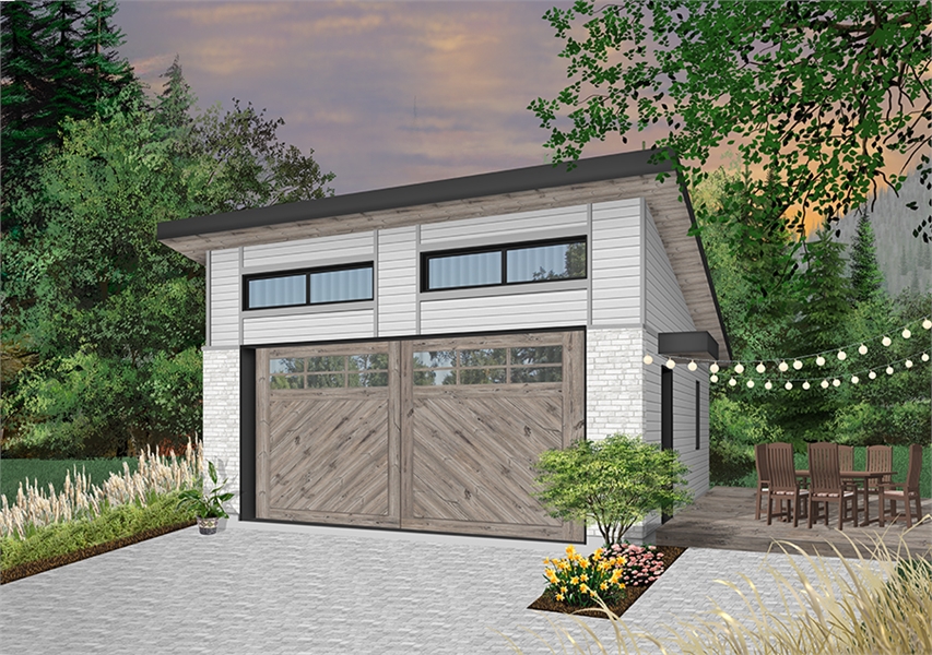 Two-car garage, contemporary style.  Lots of natural lights coming from the large window on top of the garage door, and also from the windows on the side elevations.  Practical access through side door.