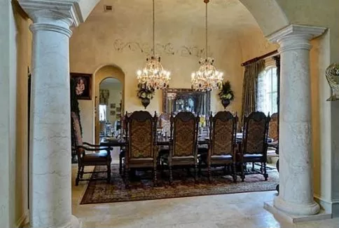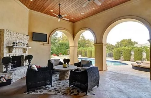 This Tuscan luxury mansion house plan brings your dreams to life. When you enter the two-story foyer, the curved staircase to the second story and the open living room will greet you. The large bank of windows in the living room face out to the courtyard to view your lush landscape. An elevator next to the living room goes to the second story outside one of the family bedrooms. At the front of the house is the elegant dining room with trey ceiling, wine and bar rooms, and access to the pantry and kitchen for ease in serving. The breakfast area has patio access and shares the free-standing island in the kitchen. A corner fireplace and grille enhance the patio, while the (concept) pool and pergola are set off by large decorative pillars. A hobby room with half bath completes this section of this luxury house plan. Beyond the den with trey ceiling and fireplace, is the luxurious master suite. The luxurious master suite boasts a bay window sitting area, lavish master bath with his and hers vanities, separate shower, tub with trey ceiling, utility room, and large wardrobe with built-in cedar closet and seat. At the front of the house plan is a quiet study with coffered ceiling and warming fireplace. Through the groin vault ceiling, a guest room with walk-in closet and full bath is tucked away in the front corner. A four-car side entry garage, utility room, storage areas, courtyard with fountain, second pergola and a cabana with lounge, bath and kitchen complete this level of this Tuscan luxury mansion house plan. Upstairs, a private safe room shares space with two family bedrooms complete with walk-in closets, balconies and full baths, a media room with bar, built-in desks and shelves. Enjoy the views from above of the main level below.