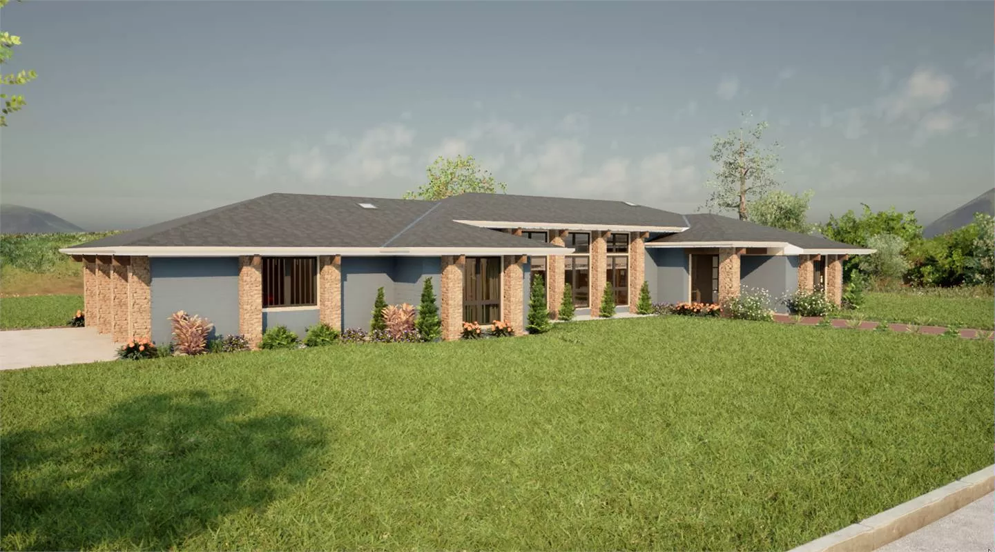 This 1 story 3,073 sq.ft. sprawling Northwest Prairie Style home, made famous by Frank Lloyd Wright, is an elevated classic with its use of low pitch hip roof lines, its copious amount of vertical windows and a functional open concept floor plan.