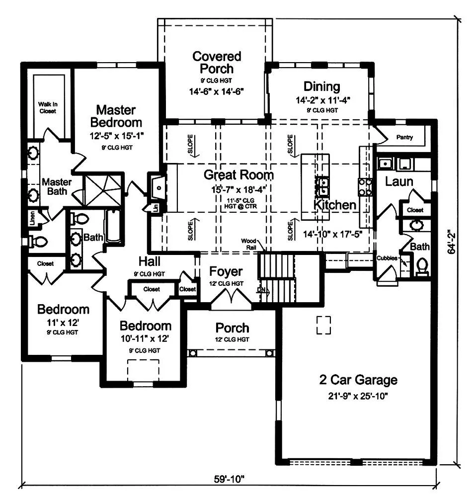 A captivating front stone portico adorns the front of this craftsman cottage style plan, giving it maximum curb appeal and leaving you to wonder what beauty and surprises lay beyond the front door. Adopting a modified ranch home style layout, this 2,064 square foot home offers almost everything within a single floor. Including 3 bedrooms and 2.5 bathrooms, this home also boasts a 2-car garage and an enormous great room that flows in to the kitchen. This space is made to feel even grander with its massive sloped ceilings that add a whole new element and feel to the property. A covered porch is accessible through the dining room, while the master suite is directly to the left of it. Finally, this home offers you the ability to leave your special mark on its design, compliments of the unfinished basement. With future bathroom hookup capabilities, this basement can create a new element about the home and can effectively almost double the livable space that you have at your disposal.
