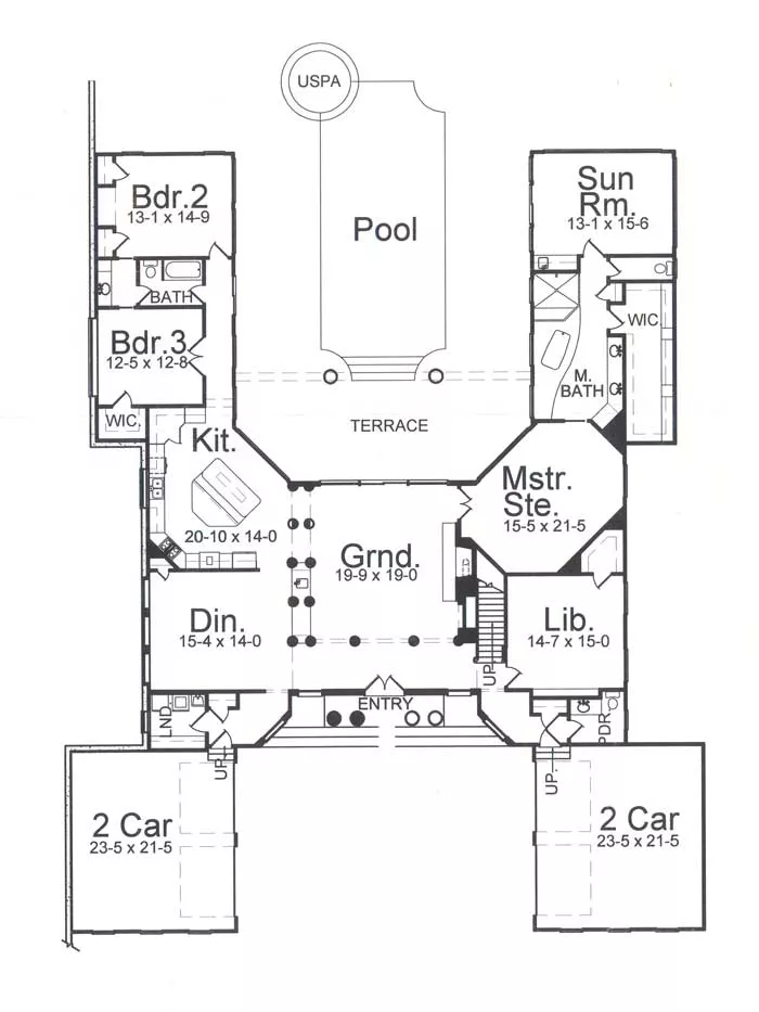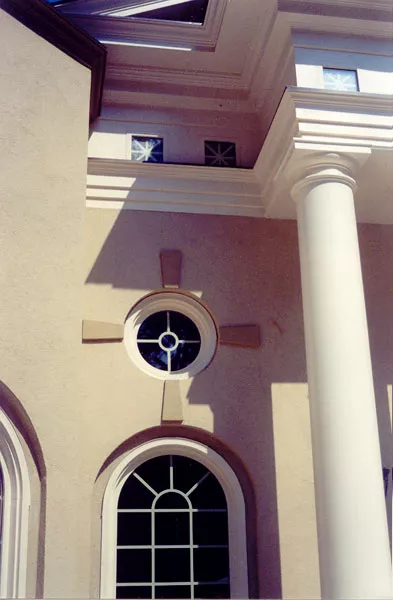 A subdued facade speaks softly of historic style, yet there's nothing shy about this neoclassic villa. The entry is a spectacular frame for the gallery foyer and grand room, which boasts a coffered ceiling. Interior vistas extend from the front paneled door to the rear loggia and pool, creating a greater sense of spaciousness and light. A wet bar and counter provide useful accouterments for planned events. An angled food-preparation counter in the gourmet kitchen allows space for two cooks. Sliding-glass doors open directly to the terrace, inviting morning meals outside. The master wing boasts a suite that includes a walk-in closet with built-in shelves and dressing space. A private bath provides a whirlpool tub, separate vanities and an oversized shower.