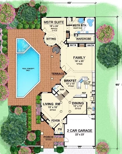 Suited for narrow lot