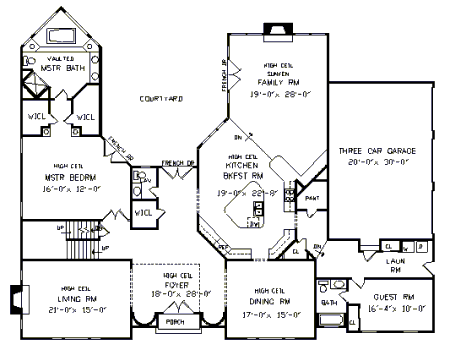 Visitors to this home are greeted by a two-story, light-filled reception foyer that is flanked by the formal living spaces with tall ceilings. It leads straight ahead to a beautiful, private rear courtyard. The angled kitchen features a triangular island and French doors that open to the courtyard. The magnificent, main-floor master bedroom offers two walk-in closets and a private bath with dual sinks and a whirlpool tub surrounded by glass block walls. I also provided it with access to the courtyard. Three bedrooms, two baths and a large versatile loft are included in the expansive upper floor.