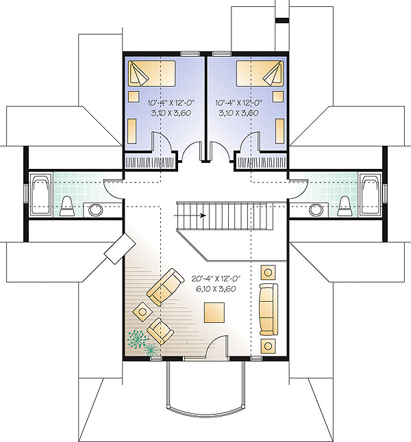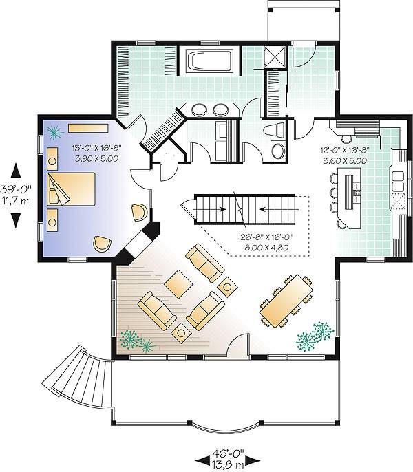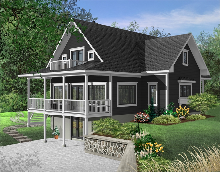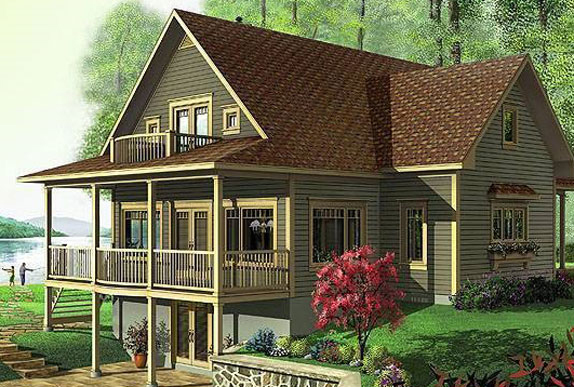 A private and subdued getaway, this country cottage style home is perfect as a vacation home or even a year-round residence. With touches of Tuscan flair, the layout and charm of this plan make it a great option as a lake or a beach house, while the 2,393 square feet housed within its 2 stories provides plenty of space for a large family and guests. The first floor of this plan enters in to a grand foyer. Nine foot ceilings around this level create an open and spacious feel throughout the home. A spacious gourmet kitchen is the first point of entry from the foyer. Complete with a large island with bar top seating, as well as a built-in work space, great for doing homework with the kids, this kitchen is sure to amaze. An open layout then gives way to a formal dining space and family room, both of which open on to a stunning covered porch, allowing you to enjoy the outdoors, regardless of the weather. A first floor master suite completes the level by offering a large walk-in closet and relaxing private bath. The second floor finds two more bedrooms as well as two bathrooms, great for privacy and accommodating extra guests. Perhaps the crown jewel of this floor is the second family room and its private balcony. Not only does this room beg for time spent together enjoying things such as game night or long conversations, but the balcony provides stunning views over your land and the space below.