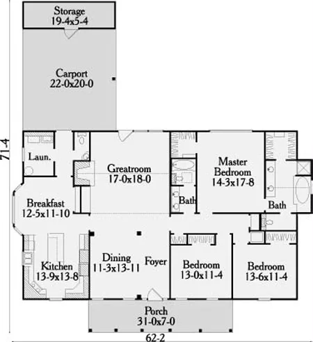 A large welcoming front porch greets family and guests. Inside, beautiful columns define the foyer and formal dining room. The great room is vaulted with built-ins. In the kitchen, plenty of storage space is provided accompanied by the oversized island snack bar. The laundry room and 1/2 bath are located close to the carport for convenience. The master suite is spacious and presents a vaulted ceiling in the bath.