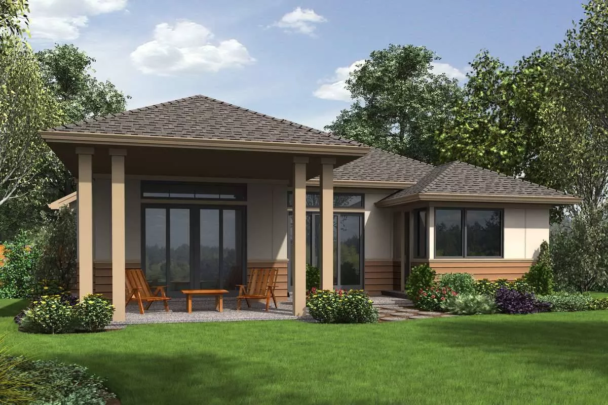 The sleek simplicity of this modern ranch style house plan does not lose sight of the fact that this home is packed full of useful rooms and features. Prime for the fast-paced 21st century lifestyle, this 2,175 square foot home has enough space to accommodate everyone. The 4 bedrooms and 2.5 bathrooms are all located on the ground level. However, the master suite has been given its own side of the layout, giving extra privacy and plenty of room. A dining and living room combination pair well with the chef’s kitchen and large island. This plan also offers a flex room which can be used as an office, a rec room, or anything in between. Additionally, this home comes complete with a covered outdoor living area, keeping you safe from the elements while still enjoying the outdoors.