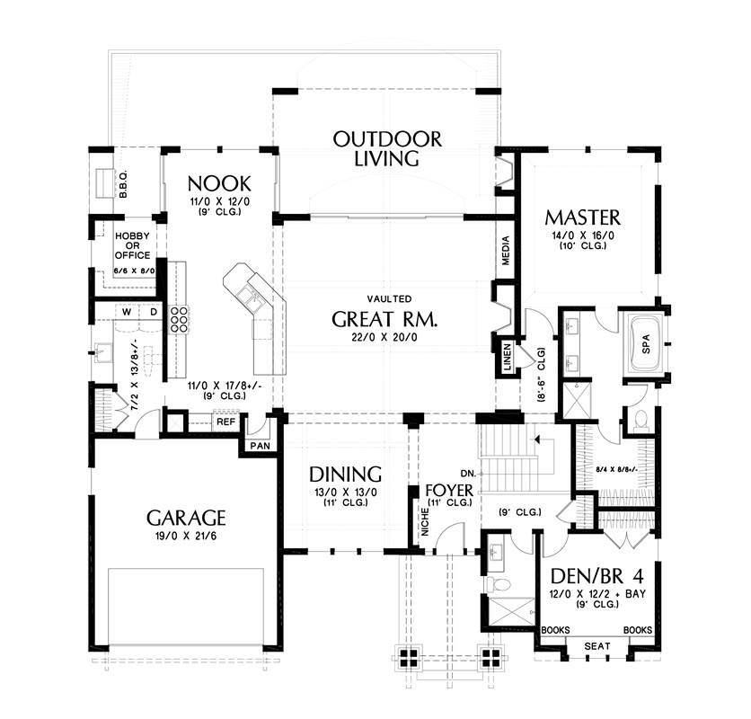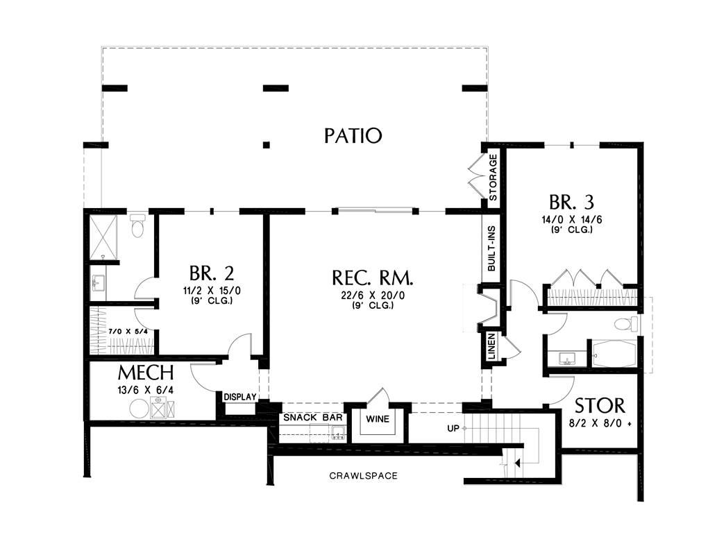 Steep rooflines, a gabled entry, and well-placed windows greet the day with grace in this large, 4+ bedroom Craftsman home. Adjacent to the oversized dining and great rooms (which feature coffered ceilings): an expansive outdoor living space enjoys its own fireplace, barbeque and built-in storage. A large, downstairs bonus space boasts a wine storage room and full snack bar. Three bedrooms (with an optional fourth, or den) are chock-full with built-ins yet maintain plenty of unobstructed space; finishes such as built-in shelving, a master bath spa, and a fourth bedroom window seat impress without imposing.