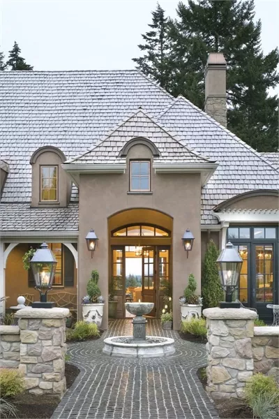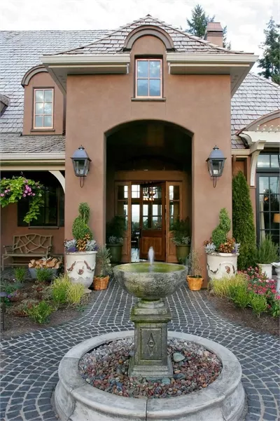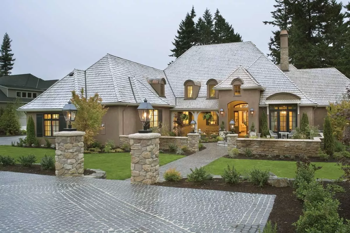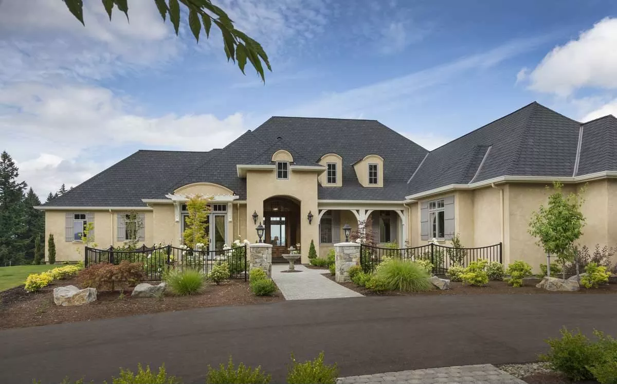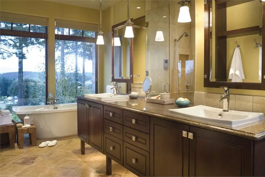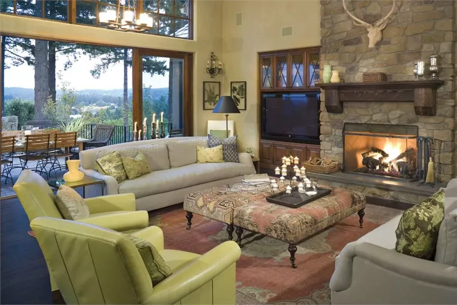 This spacious home features a French country faade. Inside, a front-facing den would make a great home office. The vaulted Great Room is dramatic enough to impress your visitors. The kitchen and dining room flow into a special outdoor living area, complete with a fireplace and a barbecue grill. A sunken tub anchors the opulent bath in the master suite. The upper floor nicely accommodates guests or hobbies. The home measures 4,352 square feet, and qualifies as one of our best-selling house plans.