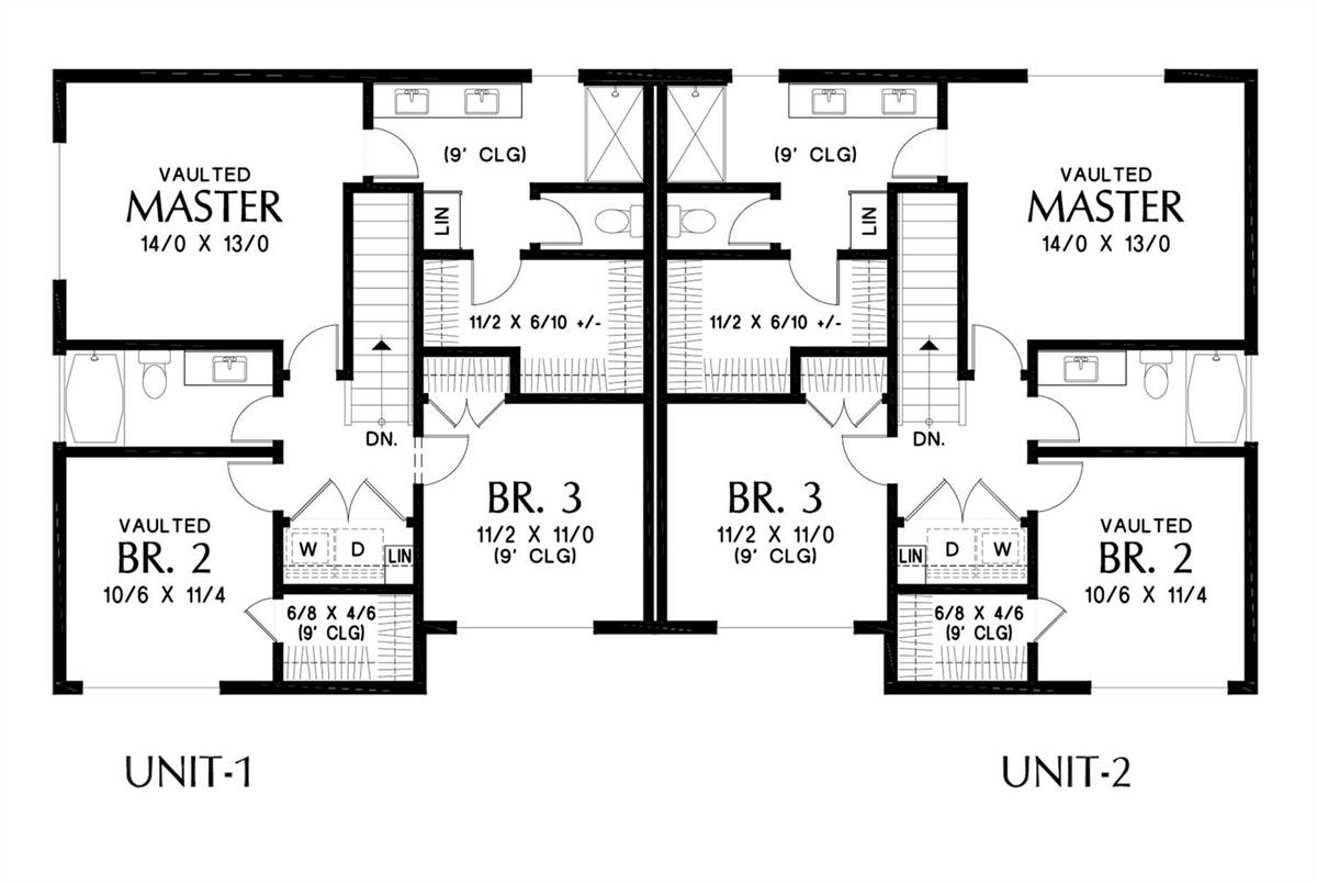 This contemporary duplex has enough space to make each unit feel comfortable and enjoyable for a family to grow and live together. Each side features 1,407 square feet, as well as 3 bedrooms and 2.5 bathrooms. Both sides feature identical layouts, but the shared wall between the units is actually the garage, giving each side a more private and quiet feeling. The first floor offers a quaint kitchen and a dining room which joins with the great room and its patio access. The second story is home to all of the sleeping quarters, including the master suite and its private bathroom, and two additional bedrooms with a shared hallway bath. A nearby laundry room is discreet and convenient for quick weekend chores.