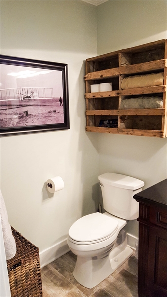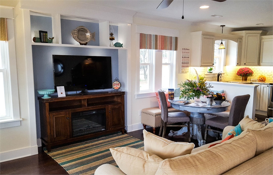 This beach bungalow makes use of all available space for its 1,187 s.f. It features 3 bedrooms, 2 bath and spacious living area. Adequate and inviting porches make outdoor entertaining seamless. Exposed rafter tails and cedar shakes mimic the Old Nags Head feel, while granite counter tops, hardwood floors, and the custom cabinetry offers the amenities that active families and retirees enjoy.