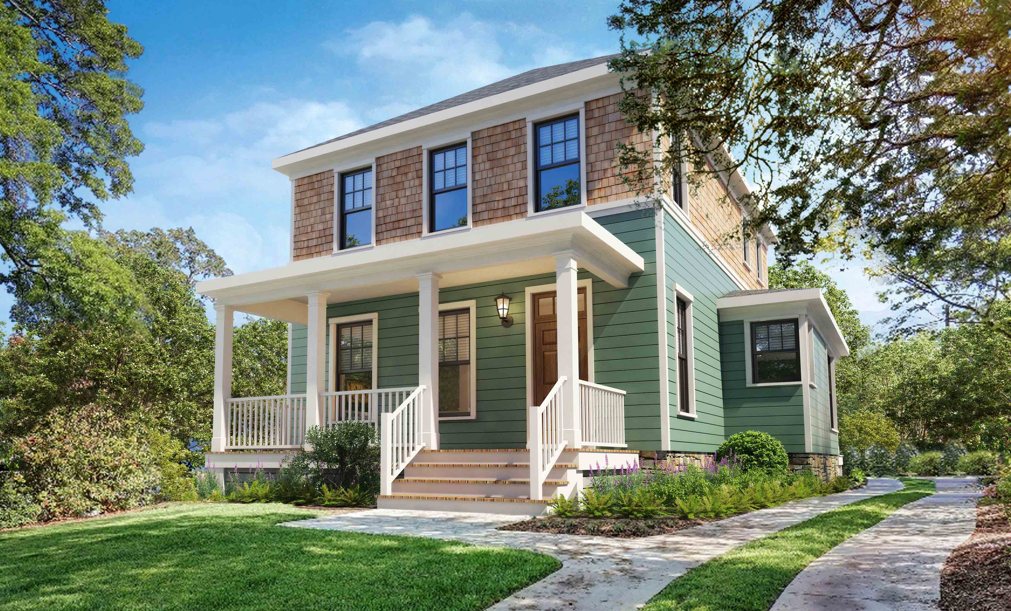 Gorgeous details can be found in abundance throughout this 2-story plan. With an exterior that incorporates lovely elements of Cape Cod finishes, and an interior that is a totally open 2,443 square feet, this home is both spacious and stylish. The 4 beds and 3 baths are great for a family and even some guests, while the inclusive layout is perfect for entertaining. Check out how the front porch opens onto a huge space, combining the living room, dining room, and chef-inspired island kitchen. For your convenience, there is a private guest suite on the main level, great for functioning as an office when not in use. Upstairs finds the master with a spa en-suite and dual walk-in closets, along with 2 more auxiliary bedrooms. Check out the addition of the laundry upstairs, making for quick and discreet weekend chores.