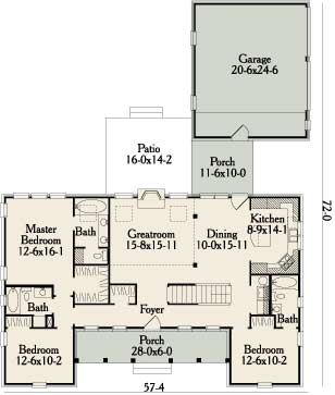 A raised front porch is cradled between two gables forming this fabulous, symmetrical design. The foyer serves as a hallway accessing every area of the home. In the living room, a vaulted ceiling is well lit by skylights and large windows beside the fireplace. Future expansion is available in this design adding an additional 474 square feet.