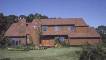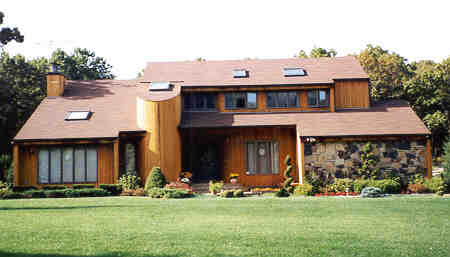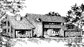 A skylighted silo draws attention to this dazzling contemporary home. Next to the silo-enclosed stairway is a two-story foyer and a sunken living room with a 17-ft. vaulted ceiling. Across the foyer, the elegant formal dining room is located conveniently close to the kitchen. The family room features a fireplace and sliding glass doors to the outside. At the center of the home, a sunny breakfast nook merges with the roomy kitchen. A handy island cooktop maximizes workspace in the kitchen. The main-floor bedroom suite could house an in-law or an overnight guest. The circular staircase leads up to a balcony that overlooks the foyer and living room below. The upper floor sleeping rooms include a master bedroom with a 13-ft. vaulted ceiling and sliding glass doors to a private deck. The master bath features a garden tub and a separate shower.