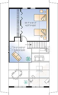 Vaulted ceilings with timber details greet you in this two-bedroom chalet plan. Expansive windows paint the open activity area in light. The master bedroom on the main floor makes this an ideal getaway property, even for baby boomers. Main level laundry, a full bathroom and generous entry with storage complete the main level amenities. Upstairs is a good sized bedroom and seating area with incredible exterior views as well as main level view.