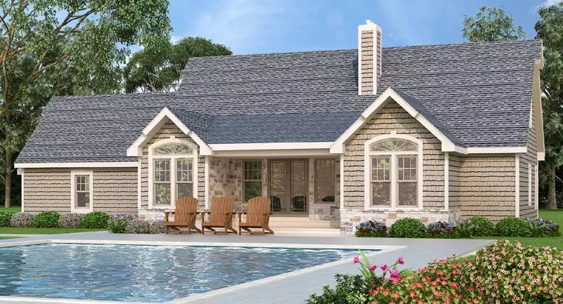 Stately columns and striking stone enhance the exterior of this Craftsman house plan, with three bedrooms, two baths and an affordable 1,828 square feet of living space. Beyond the nostalgic front porch of this home plan, the sizable great room includes a fireplace and a high ceiling. The island kitchen serves the breakfast nook and the dining room with style. When the weather is nice, how about enjoying a meal on the porch or patio? In the quiet master bedroom, you'll find two walk-in closets, a tray ceiling and porch access. The private bath showcases a garden tub, a separate shower and a dual-sink vanity. The children will be happy to have walk-in closets in their bedrooms, which are served by a nice bath. Builders point out the two-car garage, which opens to the side, keeping the front yard uncluttered. A very large expansion area on the second floor of this home design could become a playroom and an extra bedroom.