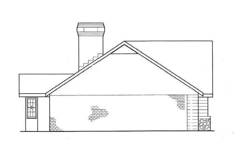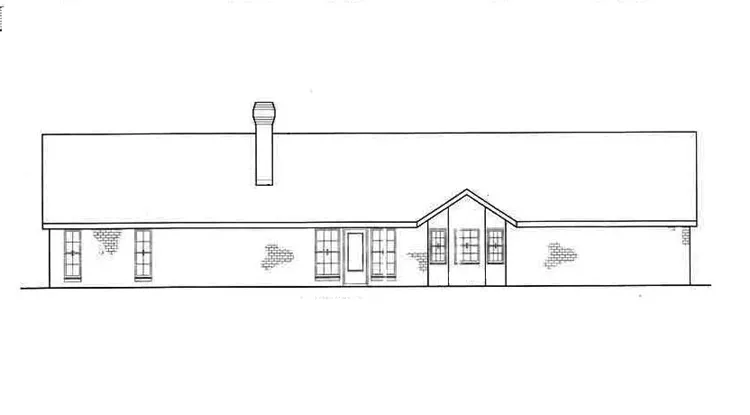 Designed for maximum economy, this ranch style rustic home features a simple but charming exterior faade. The living room is large enough to accommodate family gatherings and the beamed cathedral ceiling combined with the stone-faced wood-burning fireplace adds lots of atmosphere. There is abundant built in cabinetry on each side of the fireplace. The kitchen is economical to build but very efficient featuring a built in floor to ceiling pantry. With a change of the door placement, the bedroom nearest the entry foyer can easily become a formal parlor, home office or study. The master suite features a dressing vanity area, giant sized walk-in closet and a spacious bath with built-in linen storage.