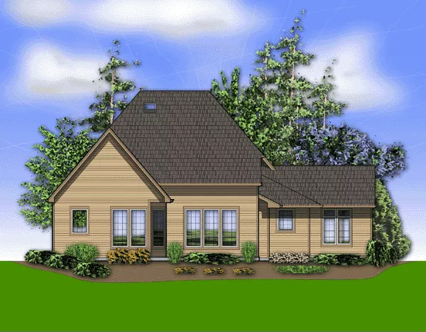 The vaulted great room has a huge wall of windows overlooking the rear yard, and a fireplace with adjacent media center. The nearby dining room has a corner window, outdoor access and a ten-foot ceiling. Note the pantry, center island and built-in desk in the kitchen. Two additional bedrooms are located on the upper level. They share a skylit hall bath.