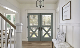A Rustic Home with Dark Wood-Look Carriage House Garage Doors