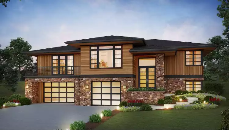 As a type of floor plan and also an exterior style, houses with a split-level design are easy to identify both inside and out. Closely related to bi-level houses, these plans have an entry level as well as stacked living and sleeping areas, which is why they are sometimes referred to as tri-level homes. The main level typically includes a kitchen and other common rooms, and the bedrooms are located up a short set of stairs while a bonus or family room might be located underneath, alongside a drive-under garage. All three levels can be connected to a central staircase as well—split-level homes tend to be very unique. They are also economical to build thanks to having all their levels contained to a smaller footprint. And because they come with any number of layouts, these plans have plenty of enthusiasts who appreciate their individuality. If you need assistance finding a split-level plan, please email, live chat, or call us at 866-214-2242 and we'll be happy to help!