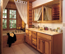 His and Hers Vanity If you want to give your bathroom a rustic look, you'll want to check out the Heritage Collection from Homecrest® Cabinetry. Customizing your new bathroom vanity is simple with choices of square, arch or cathedral doors and maple, cherry, hickory (shown above), oak and rustic hickory wood. Model: Homecrest® Heritage Collection | Hickory |