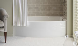 10 - An Update on a Classic Bathtub It's all about the bold lines and curves at Kohler® and that is exactly what their signature bath embodies. The Kohler® Expanse bathtub is not completely new to the market, but it just recently became available to a wider variety of homeowners. The bath bows out to 34" at the widest giving users more room to bathe or shower. This bath is also perfectly complimented by a complimentary shower rod that mimics the curve of the bath. The design of this bath exudes simplicity with a modern twist. It also maximizes the space typically allotted for a standard bathing alcove. Discerning home owners will love the design and value of this bathtub. There's no question that 'The Bold Look of Kohler®' is embodied in this one elegant bathtub. Model: Kohler Expanse Bath | MSRP $1,050.45 |