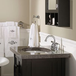 2 - A Classic Faucet with Green Sensibility If tradition and simplicity are what you desire in a bathroom faucet, then look no further than Moen's® Caldwell™ Bath Collection. The collection features soft curves and rich details that make it the perfect choice for a homeowner who wants to create a cohesive design. The Caldwell™ Bath Collection includes matching showerheads too, but we love the faucet for its elegance and its thoughtful craftsmanship. The faucet features two handles for ease of use, and a high-arc spout to provide additional clearance. The Caldwell™ faucet is also compliant with WaterSense® criteria, making it a green product that will help you save water without sacrificing performance. Not only is this faucet beautiful to look at, but for contractors, a 4" centerset design allows for easy installation. This faucet is just as stylish as Moen's® motto: "Buy it for looks. Buy it for life."® Model: Moen® Caldwell Collection™ Chrome Two-Handle High Arc Bathroom Faucet | MSRP $126.80 |