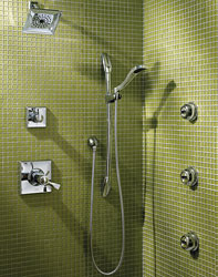 5 - Standing in the Rain There is nothing like standing in a warm rain. Except, maybe experiencing rain without the threat of lightening. Rain showers are all the rage right now and the Delta® Dryden Raincan shower is perfect for your bathroom. The square showerhead is reminiscent of the art deco period of the 1920's and '30s. This showerhead isn't just a pretty face; it also provides a drenching and invigorating shower experience. The TempAssure® technology utilizes thermostat operation for precise temperature control with the help of valves that automatically adjust the water mix. In addition to providing a great shower experience, it also includes several smart features from Delta®, including their MultiChoice® Universal Valve, Volume Control, and TouchClean. Model: Delta® Dryden TempAssure® 17T Series Shower Trim Kit | MSRP $424.95 |