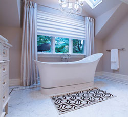 By Lauren Busser, The House Designers Contributing Writer Last week, we told you about the amazing kitchen technology exhibited at the KBIS and Greenbuild industry shows. The kitchens had us excited, but there was also plenty of new bathroom technology on the market to take interest in. Everything from beautiful heated towel bars, to smart fans with motion sensing technology have come onto the market with a vengeance and serve to help you save money while living in luxury. The emphasis on being green is alive and well with WaterSense® approved faucets and the industry's first one gallon-per-flush toilet. After you've previewed our favorite home building products, we'd love for you to vote for your favorite products on our Facebook page. Everyone that votes will be entered to win a $250 gift card. From now until December 29th you can enter each week to vote for your favorite kitchen, bath, interior and exterior products. Here is a sampling of the best in bathroom products, including smart ventilation fans, water efficient faucets and showerheads, and much more from 2012. Next week we'll showcase our favorite exterior products. |