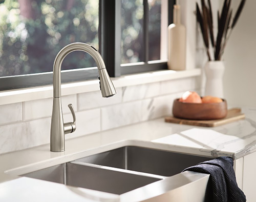 Moen™ Smart Faucet. It comes in 11 different styles and a variety of finishes to fit kitchens of all schemes, and it can be controlled 4 ways—voice activation with Alexa and Google, the Moen app, a wave sensor, and manually. Users can tell the faucet to dispense water at specific temperatures in various measurements—tablespoons, milliliters, ounces, cups, pints, liters, quarts, and gallons. Users can make custom presets to quickly and easily handle routine tasks like making baby formula or refilling pet bowls. Just want to wash your hands? The handwashing preset lets you wet your hands, then it pauses while you lather to conserve water until it's time to rinse!