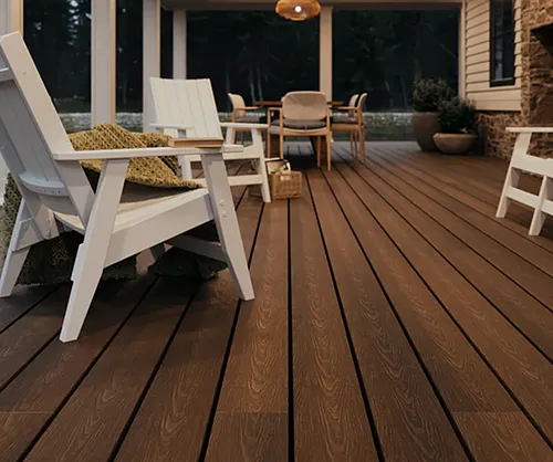 Fiberon®! With a range of products to suit all aesthetics and budgets, you're sure to find the perfect decking for your home. The Concordia Astir Collection offers a more premium take on composite decking with rich cathedral graining and multi-tonal, nature-inspired colors that won't weather through the seasons. It's made with 94% recycled plastic and wood and comes with a lifetime performance warranty—a great investment all-around!