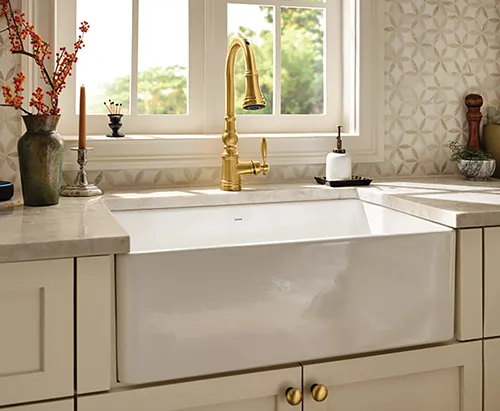 Moen® is sure to please. First, it's inherently chip-, heat-, and stain-resistant. It's also made with a thick material to minimize sound. And at 30" by 18" and 10" deep with a single-bowl design, you can take on even large dishes with confidence. You're sure to appreciate this simple yet attractive and hardwearing sink through the years—don't miss that limited lifetime warranty!