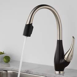 Spice Up Your Kitchen Decor Almost every faucet manufacturer had a splash of color on display, including the new Fuse™ Kitchen Collection by Delta® featuring a split-finish pull-down faucet in three attractive color options — Cracked Pepper, Chili Pepper or Snowflake White. This sleekly styled faucet in three colorful options — Cracked Pepper, Chili Pepper or Snowflake White. This contemporary styled faucet in Brilliance® stainless finish is loaded with innovations such as MagnaTite® docking, DIAMOND™ Seal Technology and Touch-Clean® Technology. Model: Fuse™ Single Handle Pull-Down Kitchen Faucet | 9158-SB-DST | Stainless and Cracked Pepper | MSRP: $399.55 |
