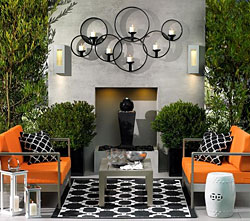 LAMPS PLUS® Al Fresco This contemporary outdoor living space from LAMPS PLUS® won us over this year. A foundation, with candles above offers a great focal point and bright outdoor chairs and soft rug underfoot provide a very comfortable space for you to enjoy some warm summer nights. Model: Shop this collection |