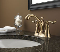5-Delta® Linden™ Two-Handle Centerset Lavatory Faucet In 2013, Delta® expanded its popular Linden™ bath collection. The design of these faucets was inspired by nature. The silhouette evokes that of a tree branch and the transitional style compliments most bathroom fixtures. The two-handled design is perfect for precise temperature control. With bathroom trends for 2014 projecting that bathroom design will move towards more organic shapes inspired by nature, this faucet is sure to continue to be a hit. Model: View the entire Linden™ Collection | $138.95+ MSRP |